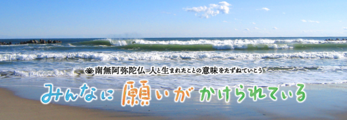 「願い」と聞くと、やはり「本願」という言葉を思います。それは、阿弥陀如来がまだ法蔵菩薩であられた時、全ての人々を救うために五劫という想像を超えた時間を費やし誓われた四十八の願いです。端的には「誰をも救う、我が名を呼べ」すなわち「ただ念仏」という言葉に集約されるのでしょう。まさしくテーマ冒頭の南無阿弥陀仏と呼応します。