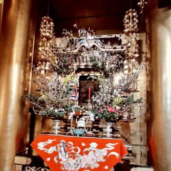 ちいちの華2025.04.19慶讃法要順調に本日三日目です 大きなトラブルもなく、教区慶讃法要がにぎにぎしく勤修されております。今回はちいちの華が担当させていただいた本堂の仏華を紹介いたします! 【立華担当】中尊前:洲崎善範/祖師前:乙部大信/御代前:高橋照吾/北余間:太田善顕/南余間:治田保男 中尊の桜の直真もだいぶ咲いてきました。おそらく結願(最終日)には満開になることでしょう! 御堂会館2階Fホール(スタバの上です)で「仏華展」も開催中です。こちらもぜひお越しください! この記事は銀杏通信から転載しています